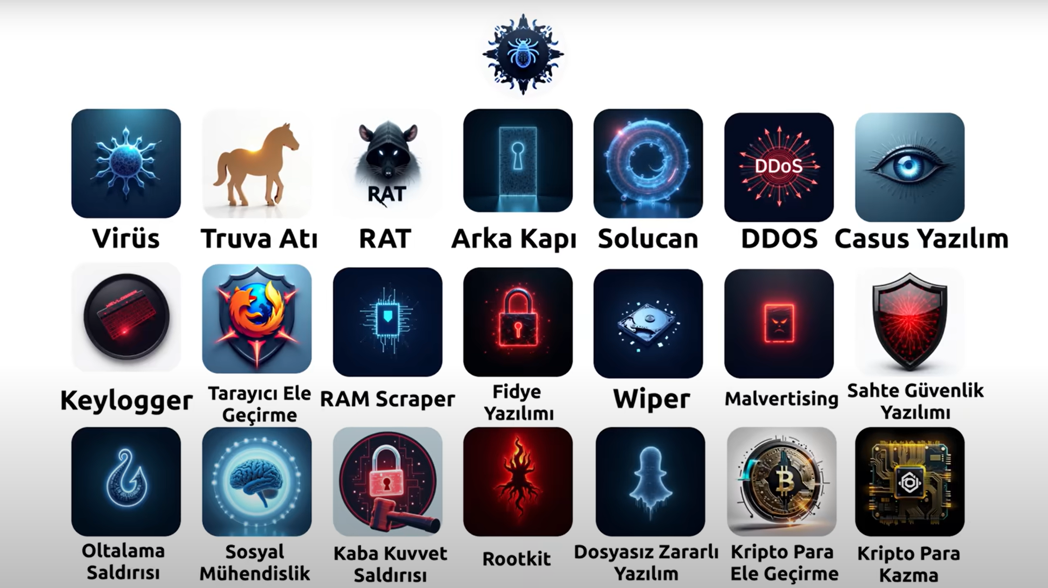 1. Virüs (Virus) Virüs, çalıştırılabilir dosyaların içine gizlenerek bulaşan, kendini çoğaltabilen ve dosyalara zarar veren zararlı yazılımlardır. Davranışları: Tespit ve […]