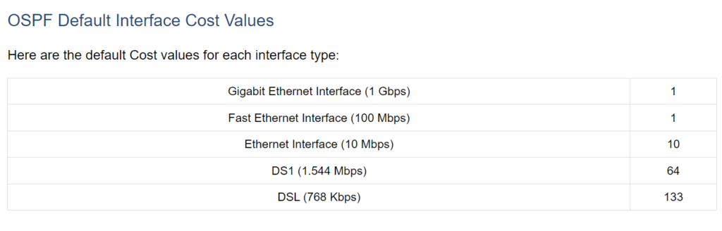 OSPF cost değeri, arayüz bant genişliği ile ters orantılı olarak hesaplandığı için,interface
